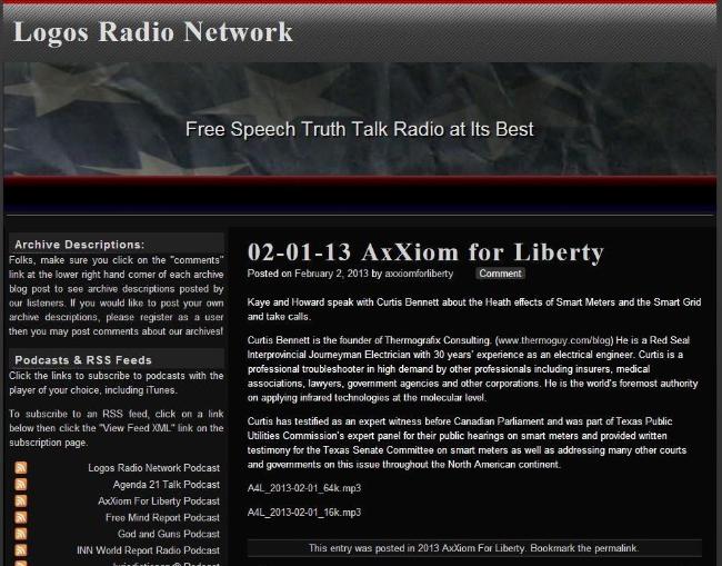 Posted on February 2, 2013 by axxiomforlibertyKaye and Howard speak with Curtis Bennett about the Heath effects of Smart Meters and the Smart Grid and take calls. The entire show will be dedicated to covering some of the most pressing concerns about smart meters and the smart grid.