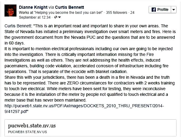 It is important to mention electrical professionals including our own are going to be injected into the investigation. There is critically important information missing for the Fire Investigations as well as others. They are not addressing the health effects, induced pacemakers, building code violation, accelerated corrosion of infrastructure including fire separations. That is separate of the ecocide with blanket radiation.